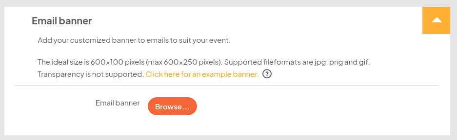 You can customise the confirmation message to reflect the style of the event by adding an e-mail banner. This is done as written in the steps below: