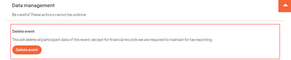 Scroll down to 'Data management'. Here you will find a number of options, including deleting your event: