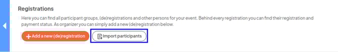 Within aanmelder.nl you’re able to add your own list of participants as new registrations. This can be done manually, but also in bulk by importing your own Excel file with registrations.