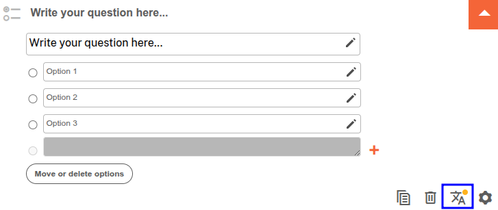 Next to the settings of the question in the registration form you will see a new icon appear. By clicking on it you can translate the question into your second and/or third language:
