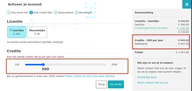 Bepaal het aantal credits dat je naar verwachting gedurende het jaar nodig zult hebben. Hoe meer credits je afneemt hoe hoger de staffel korting is