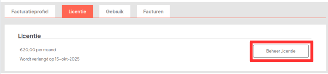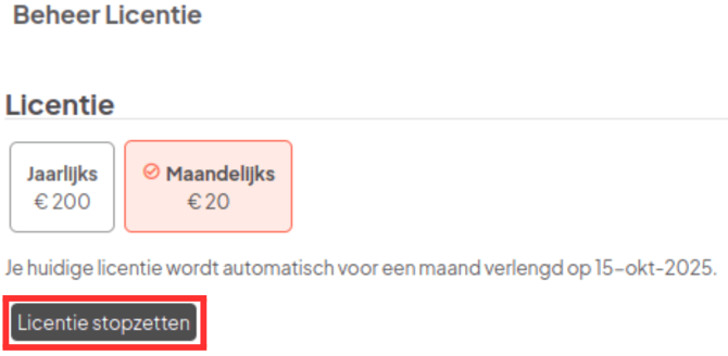 Nu zie je de optie om de licentie stop te zetten en te beëindigen.