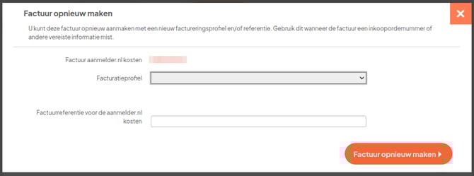 Selecteer het juist facturatieprofiel en klik op Factuur opnieuw maken.