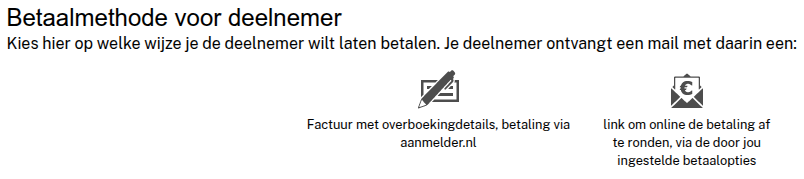 - Indien de deelnemer een betaling moet voldoen krijg je het volgende scherm te zien: