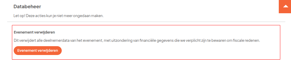 Scroll naar beneden tot het kopje 'Databeheer'. Hier vind je een aantal opties, waaronder je evenement verwijderen: