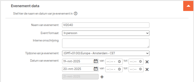 Als het evenement op meerdere dagen valt, kunnen er dagen toegevoegd worden door op het plusje te klikken