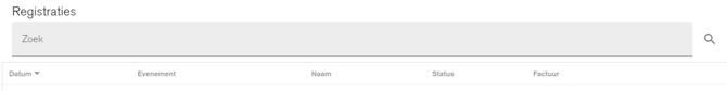 Als je hier op klikt zie je een overzicht van de facturen voor dit evenement. Je ziet de datum van de factuur die is aangemaakt, het factuurnummer en het bedrag met de status erbij.