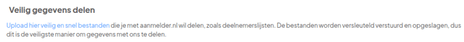 Via de uploadtool kun je gevoelige informatie snel en veilig delen met de medewerkers van aanmelder.nl. Je kunt 1 bestand per keer uploaden, met een maximale grootte van 20 MB. Wij krijgen automatisch bericht als je een bestand met ons deelt via de uploadtool.